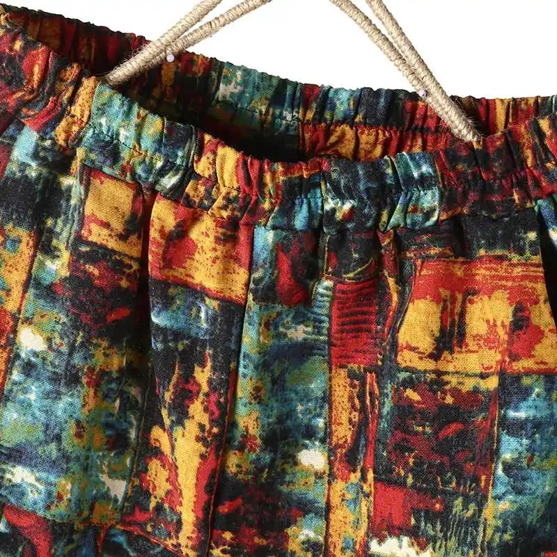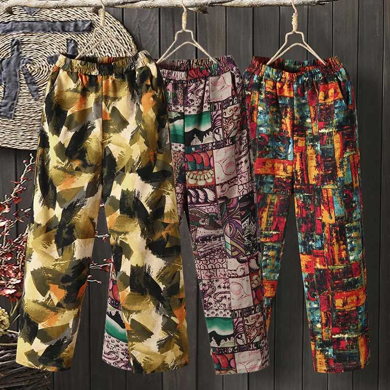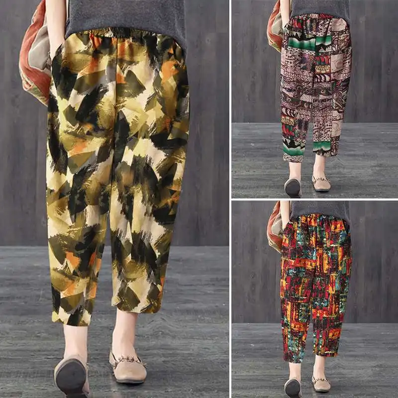 Брюки ZANZEA женские с цветочным принтом, винтажные шаровары с эластичным поясом в богемном стиле, повседневные свободные хлопково-льняные штаны в стиле оверсайз