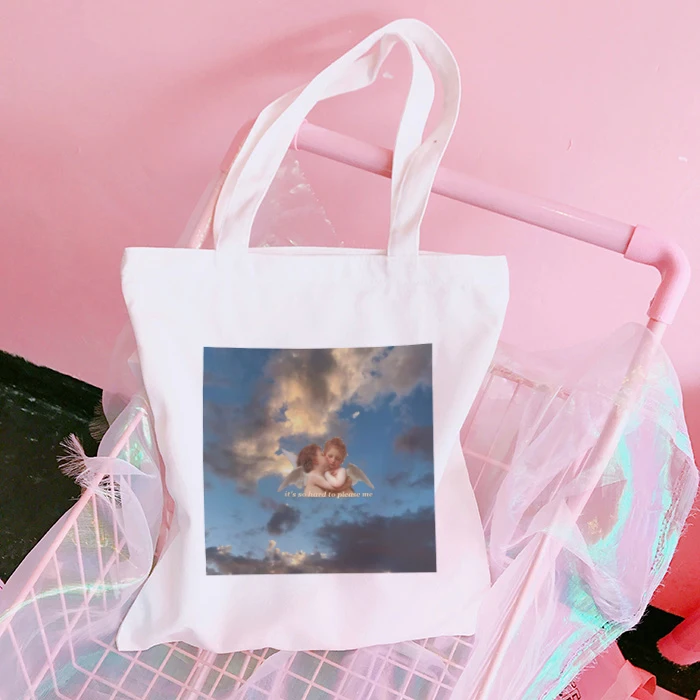 Холщовая Сумка-тоут Angel в стиле 90-х, для девочек, винтажная складная сумка для покупок в стиле Харадзюку