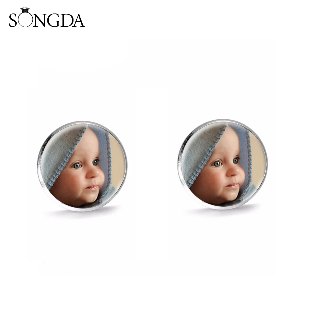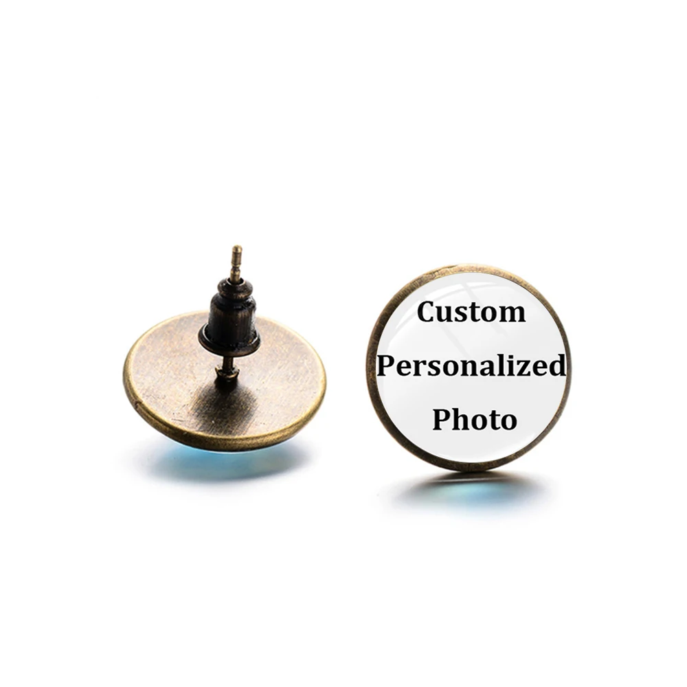 2020 новые индивидуальные серьги-гвоздики персонализированные Семейные буквы портрет логотип фото стеклянные круглые серьги лучший подарок на день рождения
