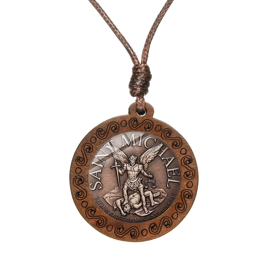 Ожерелье-амулет Archangel St Michael Saint Protect Me Saint Shield, очаровательные стеклянные круглые деревянные подвески, ювелирные изделия для мужчин и женщин