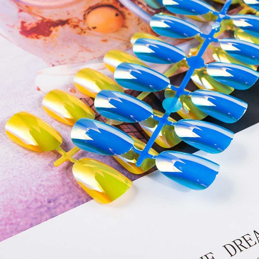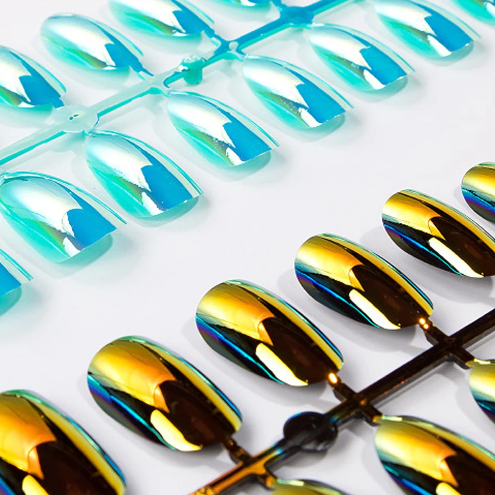 Форма: шпильки дизайн полное покрытие длинные ногти Размер: 12 различных размеров s подходит для ваших натуральных ногтей Длина: 1,8 мм-2,5 мм Ширина: 0,8 мм-1,3 мм Содержит: 24 насадки для ногтей Цвет: как на картинке Посылка включает в себя: 1 * накладные ногти (24 шт.) Без клея, без сухого времени Безопасно для натуральных ногтей Удаление кожуры, без ацетона Выберите правильный размер, чтобы соответствовать вашим пальцам, предварительно приклейте к задней части искусственного ногтя Нанесите ногти на натуральные ногти Выровняйте кутикулу, аккуратно нажмите и удерживайте в течение 5 секунд Металлическое зеркало цвета ногтей, чтобы дать фольгу золото/серебро другие красочные взгляд на ногти, металлические пальчиковые когти модные маникюрные требования самые модные-короткие шпильки и красочные хром най
