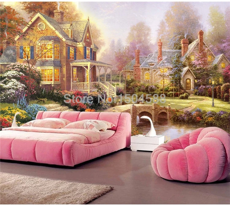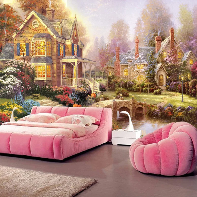 Фотообои в европейском стиле, картина маслом, пейзаж, дом, строительные обои, гостиная, тема, отель, фон, Настенный декор, обои