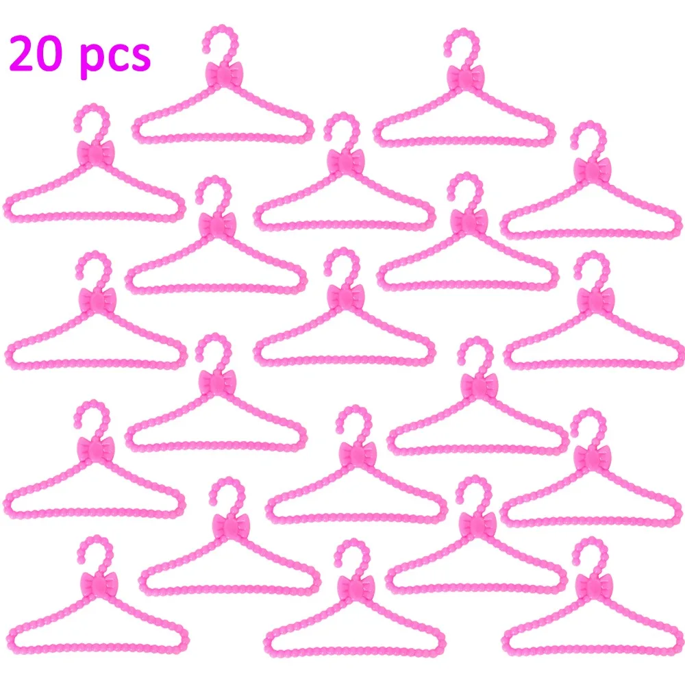 Милые вешалки 20 шт.лот смешанного дизайна, держатели, розовый фиолетовый серый гардероб, Аксессуары для платья, одежда для кукольного домика Барби, игрушка сделай сам
