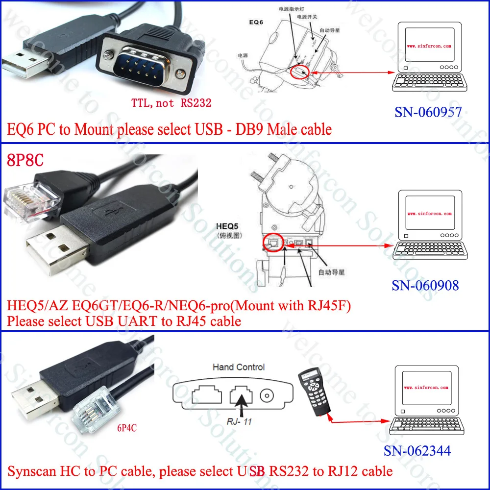 Кабель USB для DB9 FTDI Uart TTL для Skywatcher EQ6 EQ5 HEQ5 для ПК или ZWO Asiair Control Kable EQMOD