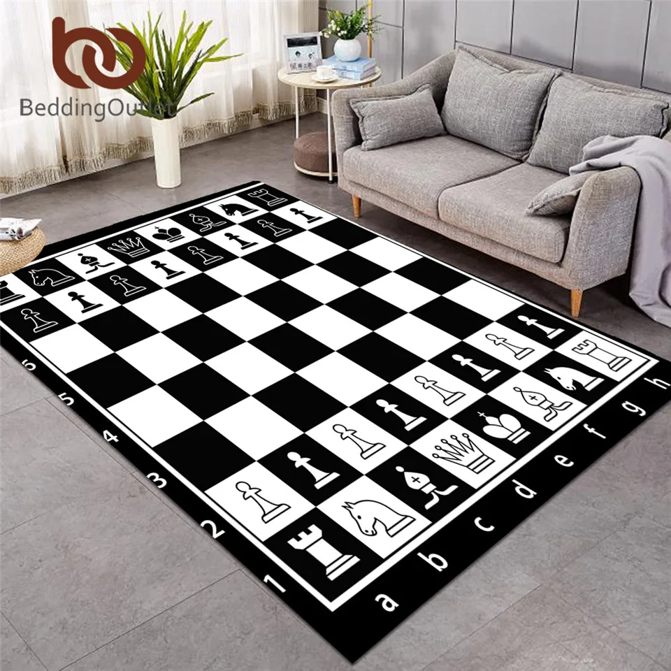 BeddingOutlet шахматная доска, большие ковры для гостиной, игр, детский игровой коврик, черно-белый коврик, квадраты, Подростковый коврик