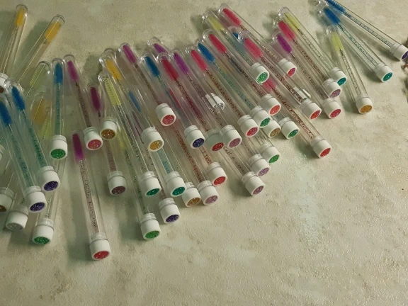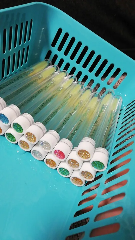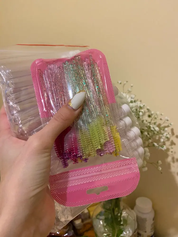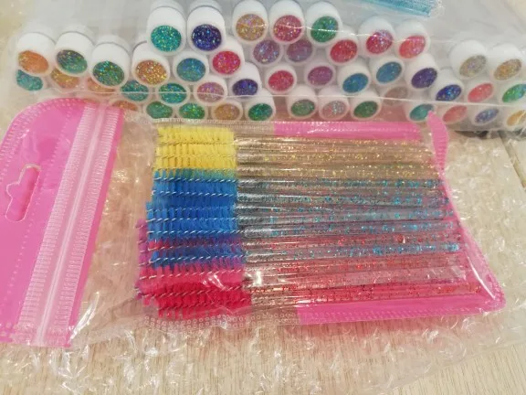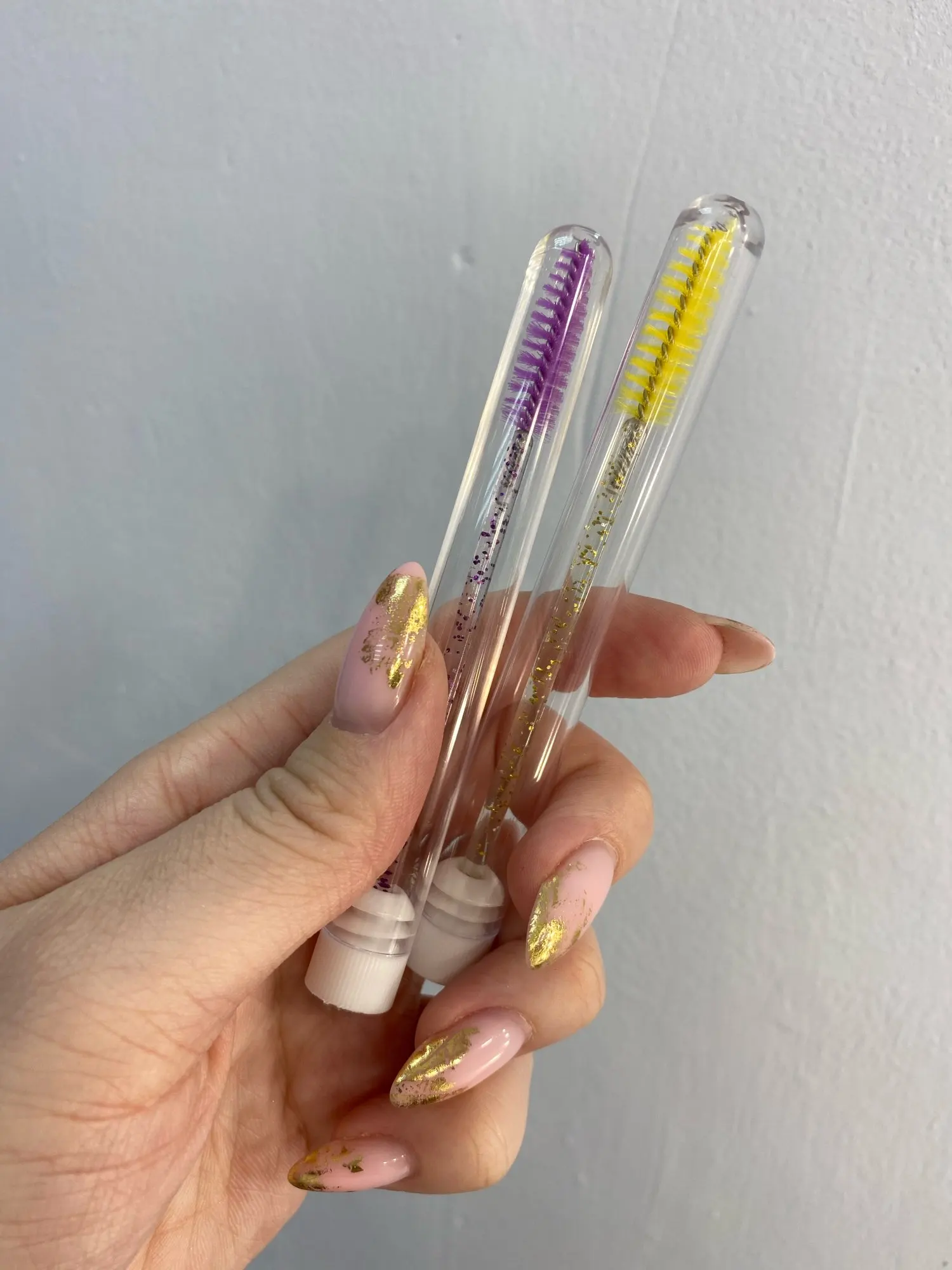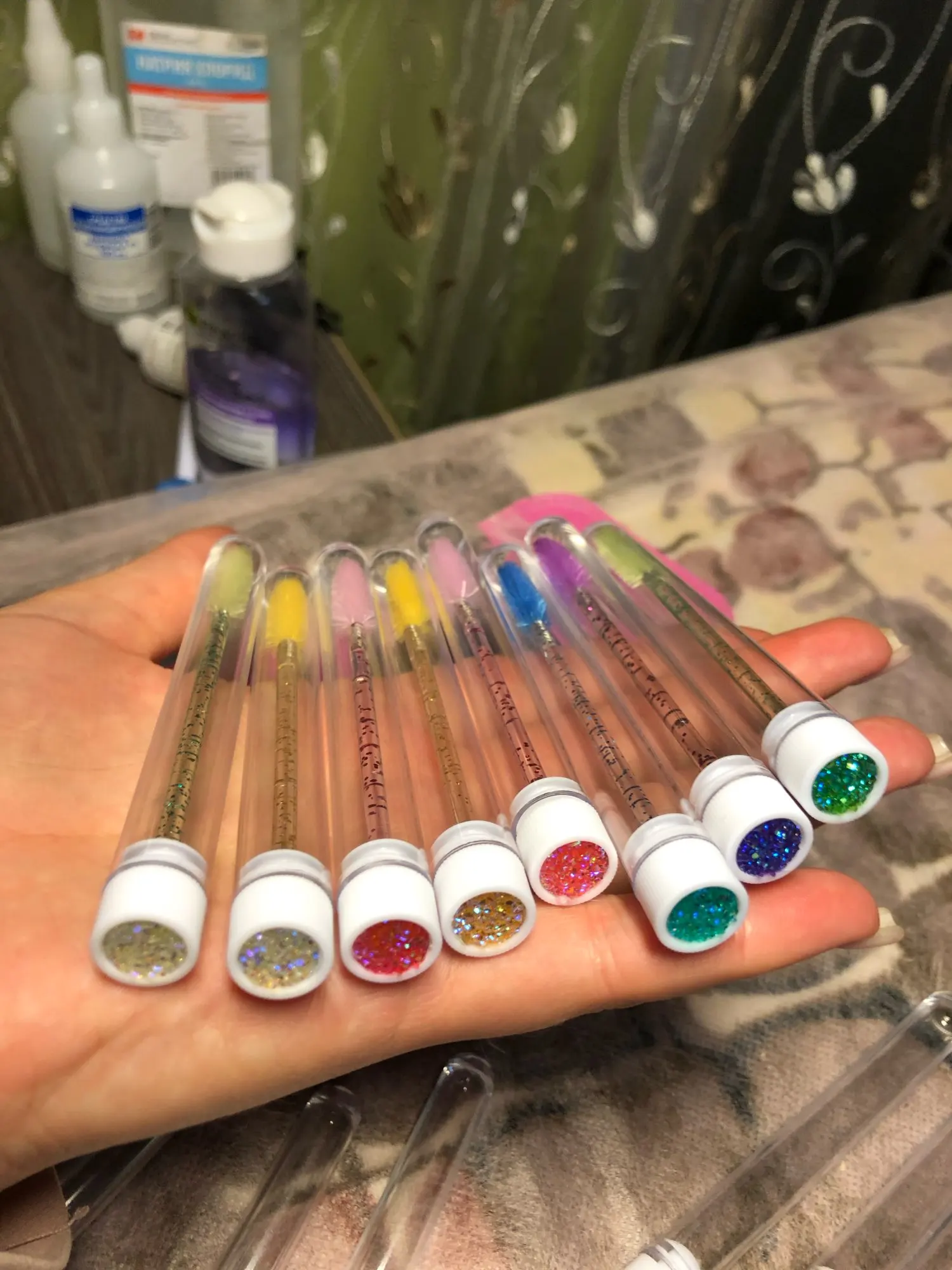 Идеальный подарок клиентам после процедуры. Теперь щёточки будут чистыми и поместятся в сумочку. Удобно что колбочки маленькие. Ну и все девочки любят блестящее и цветное)