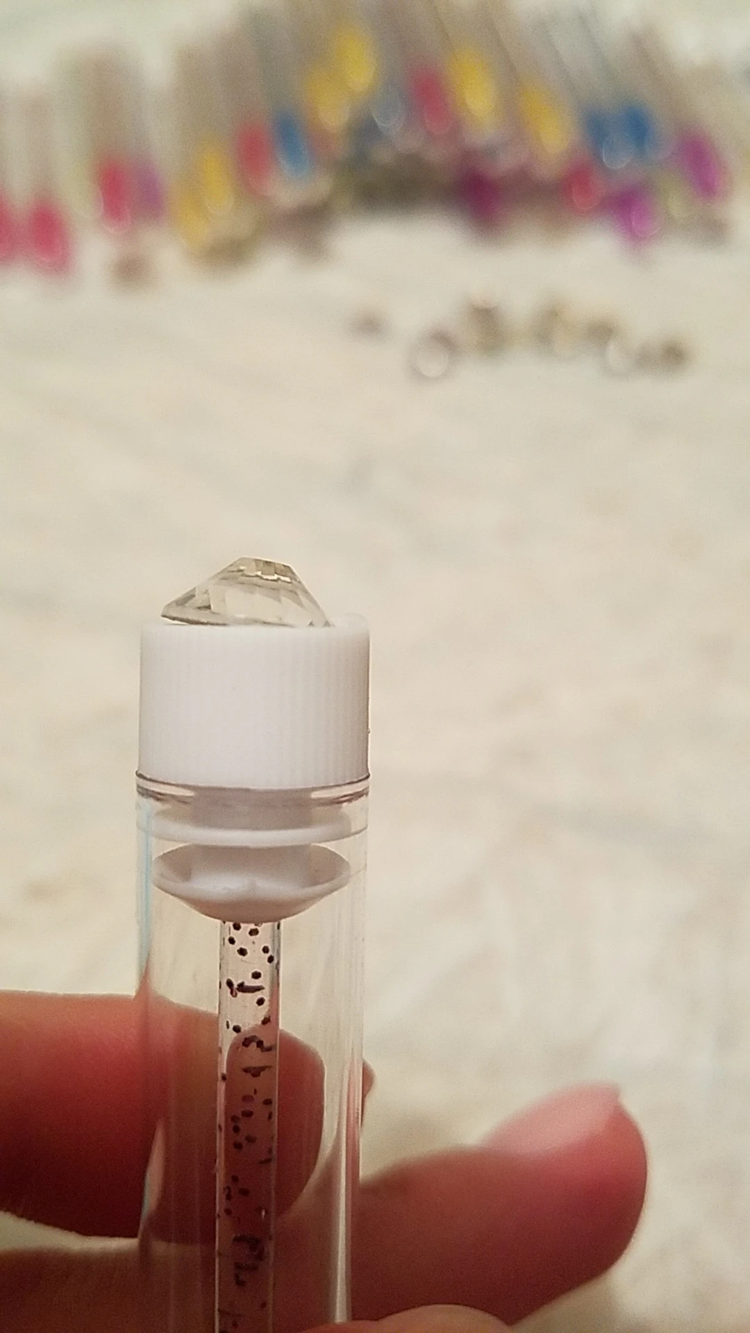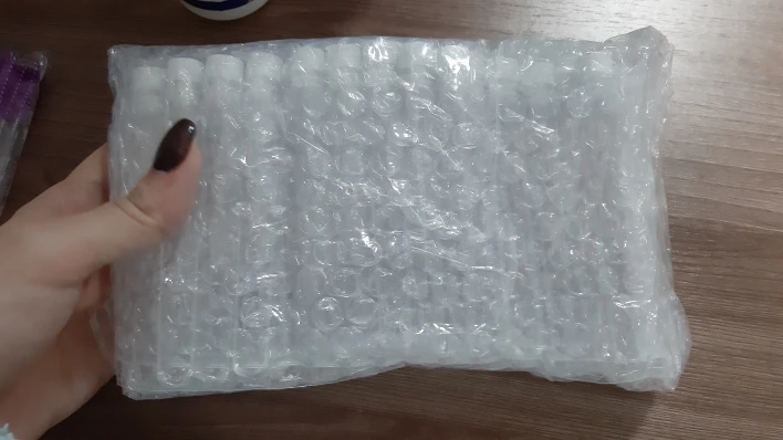 Очень понравились колбочки с щёточками . Яркие, блестящие, как на картинке, щёточки упакованы в специальный пакетик. Колбочки в пупырку и в пакет. Доставка до Москвы несколько дней курьером в квартиру. Сначала показалось, что щеточка не влезает. Но на самом деле все идеально помещается. В крышке колбы отверстие, куда вставляется щеточка. Клиенты довольны!)