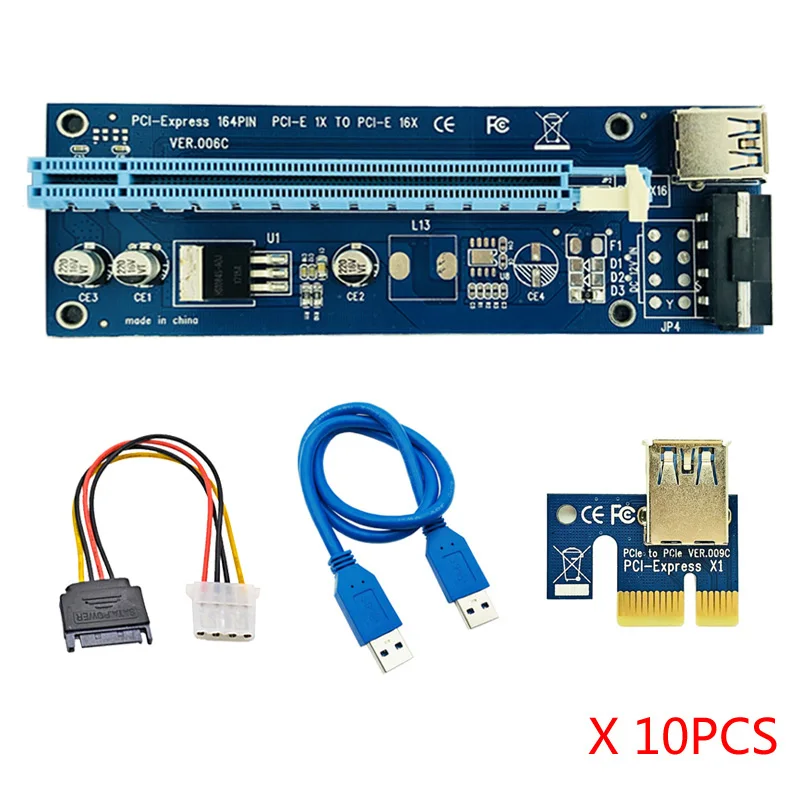 10 x PCI-E 16x подъемная плата10 x PCI-E 1X Riser Card10 x Синий USB 3,0 кабель10 x SATA 15Pin до 4Pin кабель питания
