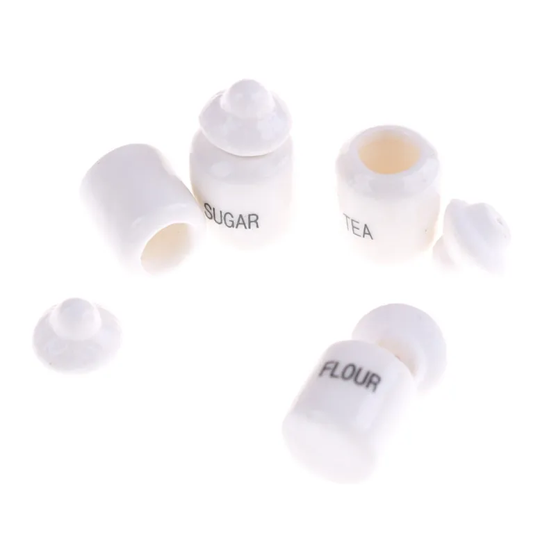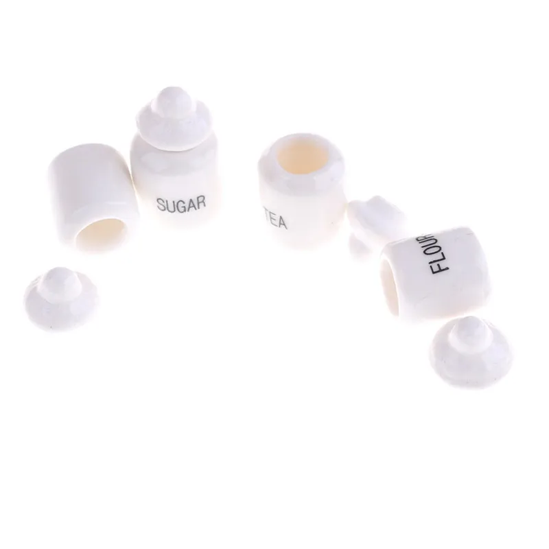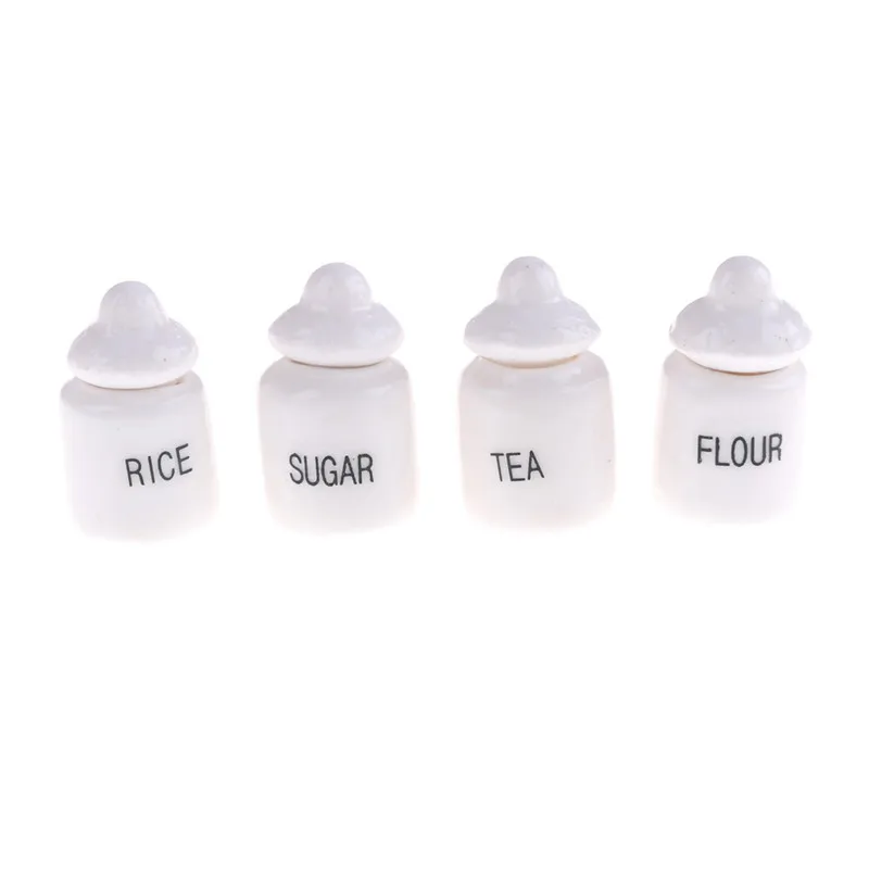 4 шт. 1:12 кукольный домик миниатюрная Милая Белая керамика баночки для хранения кухонные аксессуары классическая мебель для ролевых игр Детские игрушки
