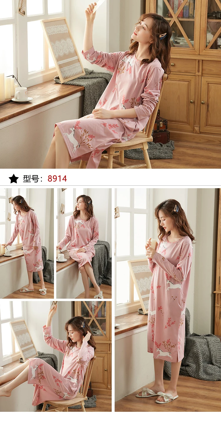 Ночные рубашки женские большого размера 3XL с принтом и круглым вырезом средней длины свободные простые мягкие дышащие пижамы в Корейском стиле новая популярная женская одежда для сна Ulzzang