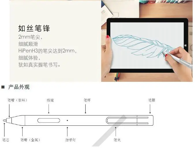 2. Металлический матовый корпус ручки, эргономичный дизайн.3. Чувствительность до 99%: линии письма гладкие и естественные, более точные и произвольные, когда вы пишете.4. Наконечник ручки HiPen H3 имеет только 2 мм, что принесет вам более тонкий и Гладкий опыт письма, так же, как вы пишете с настоящей ручкой.5. HiPen H3 использует батарею AAAA для питания и имеет дизайн низкого энергопотребления.