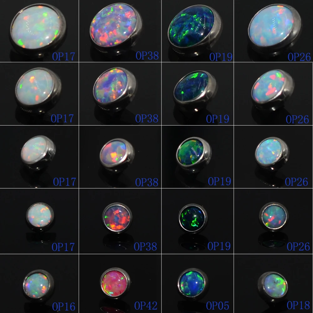 CHUANCI 1 шт. G23 Титан с плоским опалом драгоценный камень кожа Топ Якорь кожа дайвер имплантаты Топы пирсинг ювелирные изделия 16 г