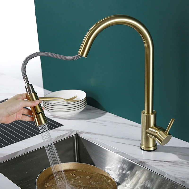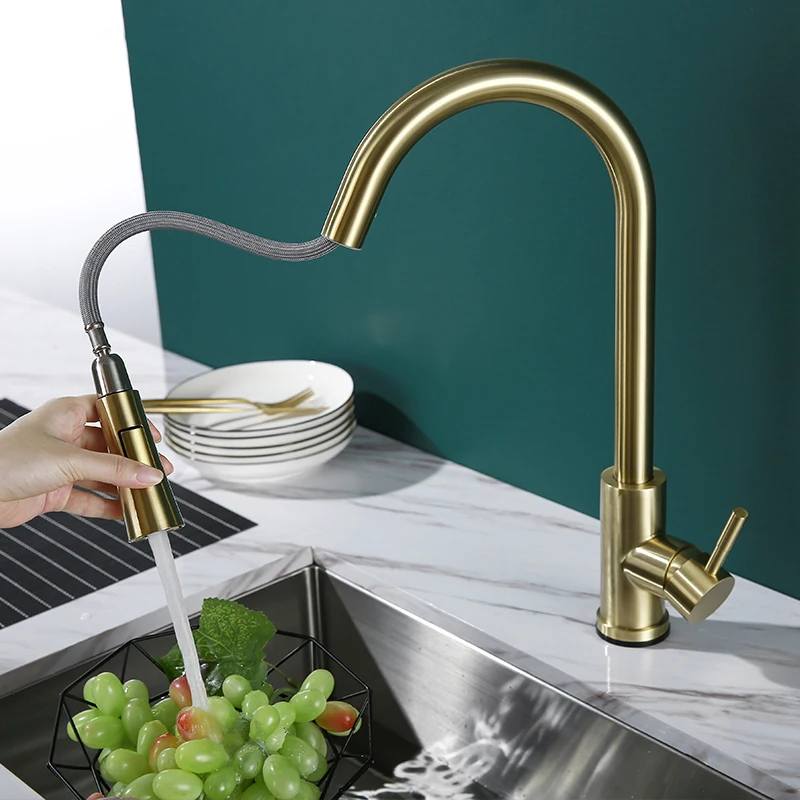 Вытяжной распылитель:Вращающийся на 360 градусов распылитель и носик с 2 функциональными головками, однорычажные краны для кухонной раковины. Два режима распыления позволяют легко переключаться от всплеска газированного потока к мощному предварительно краску-распылителю на перекидке выключателя.