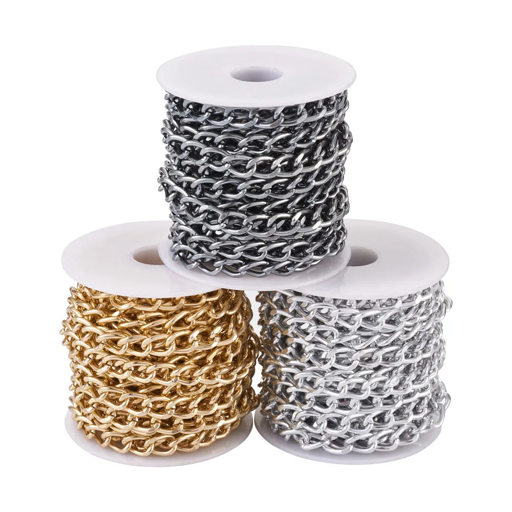 Цепочка для изготовления ювелирных изделий, из алюминия, золотистогосеребристого цвета, 5 м
