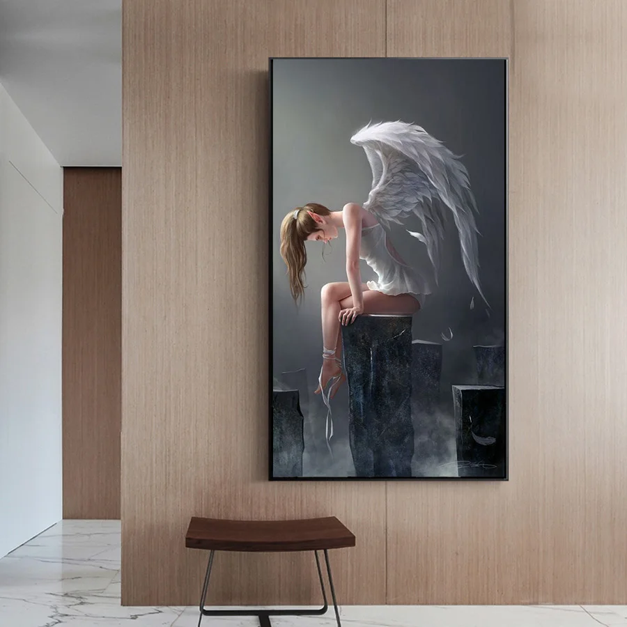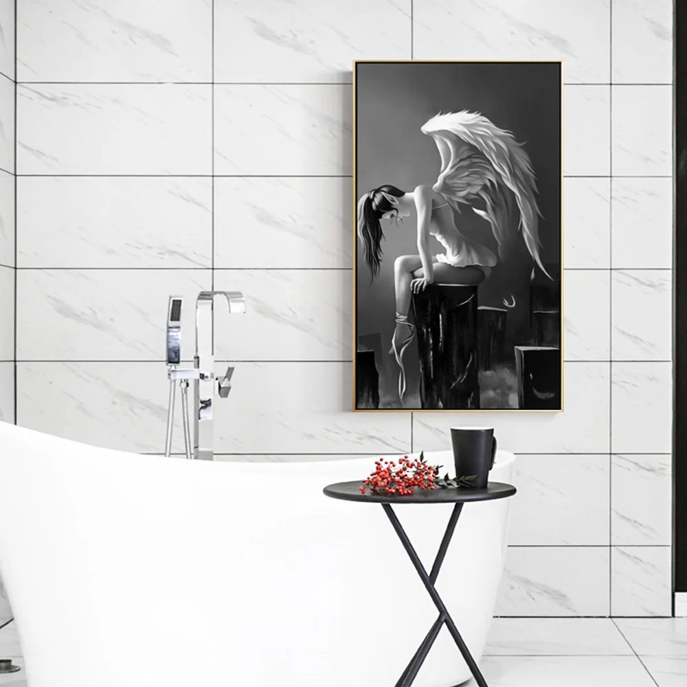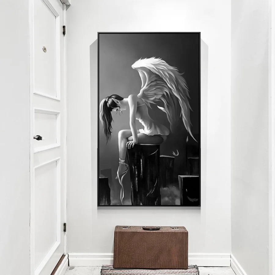 Современные Крылья Ангела черно-белый аниме постер холст картина для гостиной девочки комнаты детской комнаты домашний декор Настенная картина