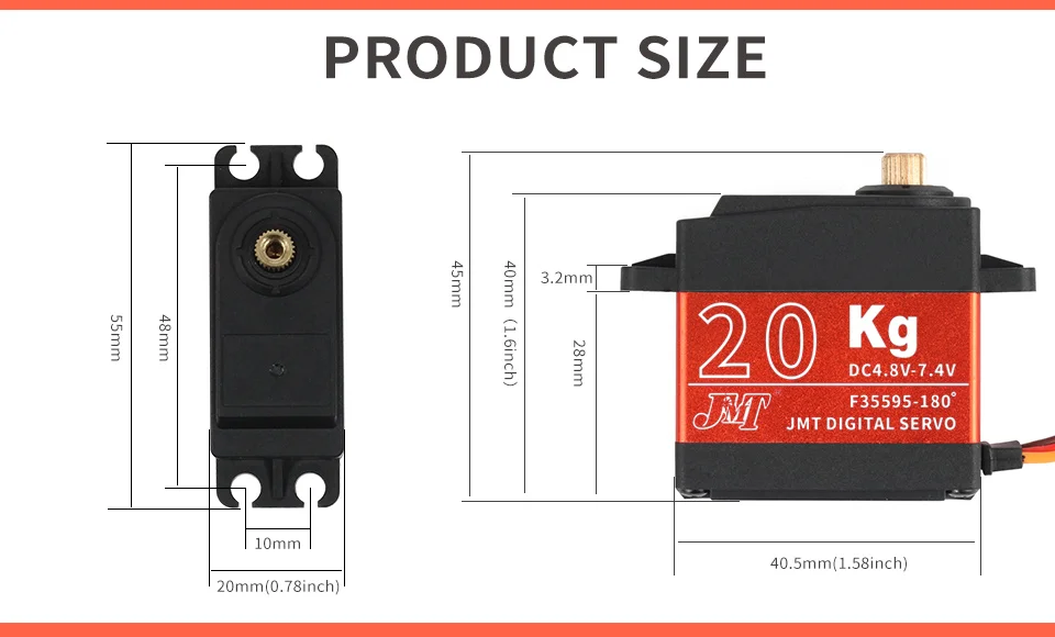 Цифровой сервопривод JMT 20 кг с большим крутящим моментом, металли...