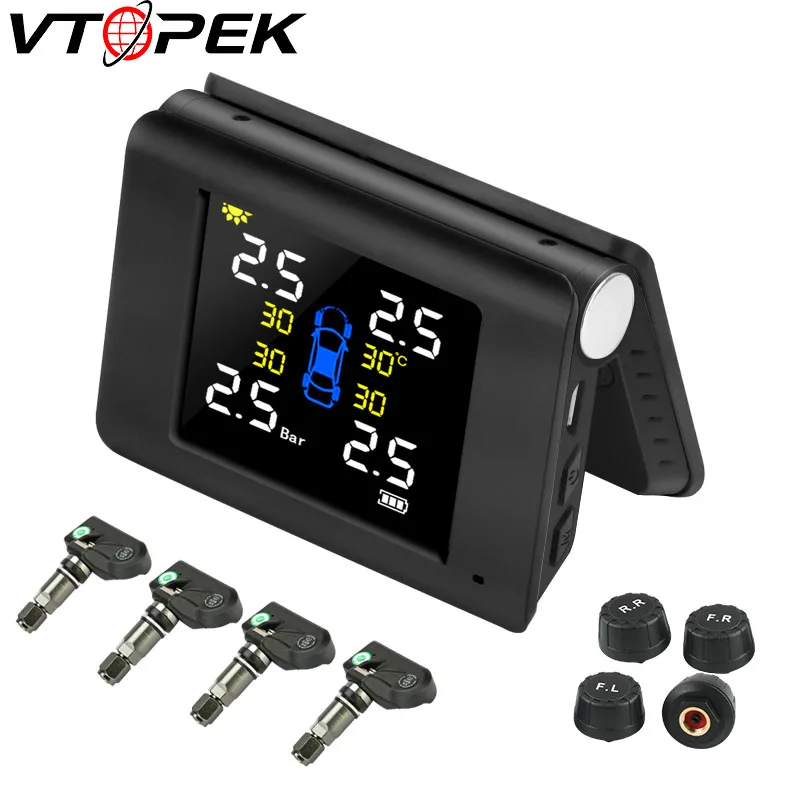 Система контроля давления в шинах VTOPEK, система контроля давления в шинах, система сигнализации с большим дисплеем, 5 В, внутренние и внешние датчики, 4 датчика