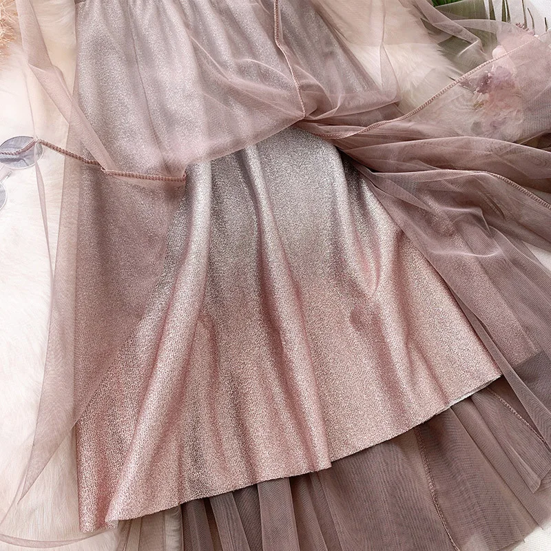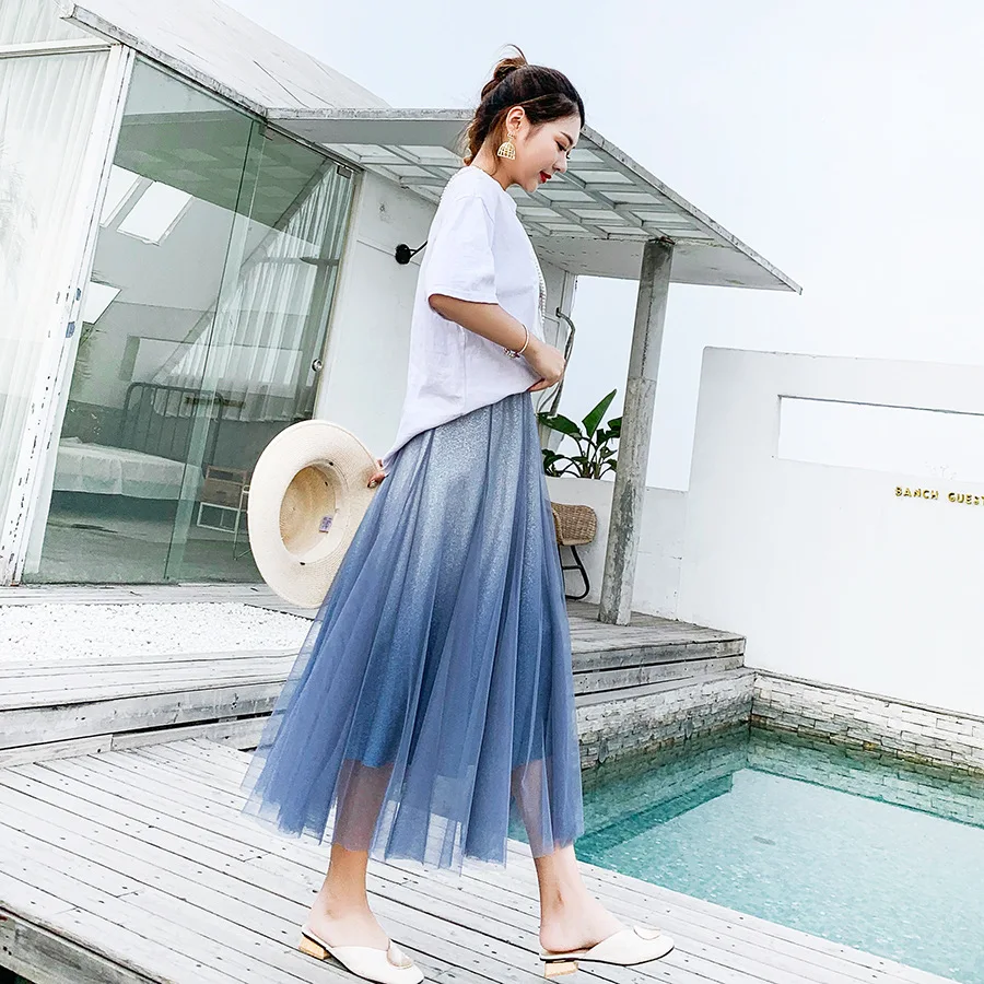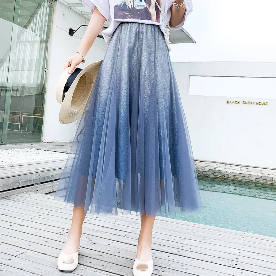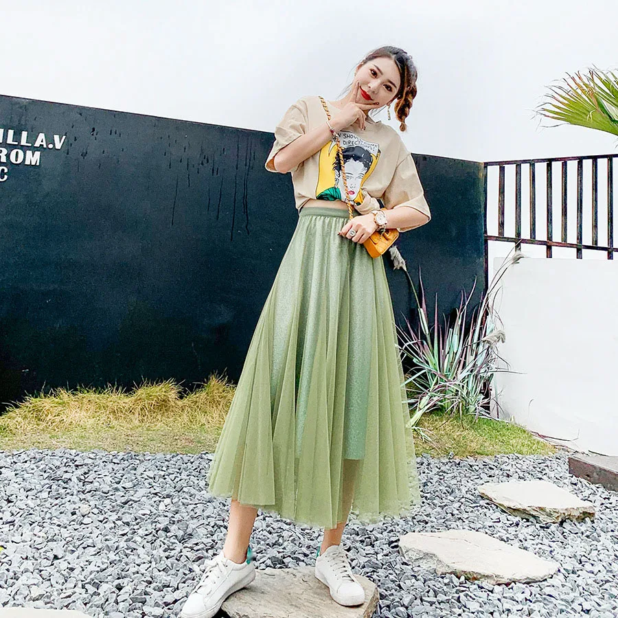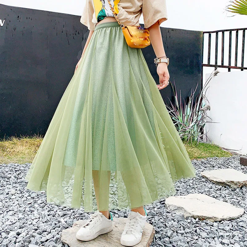 Юбка-миди из фатина OHRYIYIE, зеленая, с градиентным цветом, с высокой талией, весна-осень, 2021
