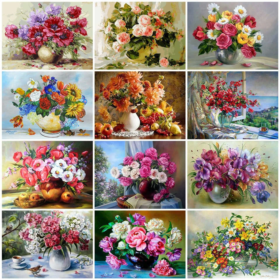 Набор для рисования по номерам AZQSD, Набор для творчества, ручная краска, подарок, акриловая краска, рисование по номерам, ваза, украшение для дома