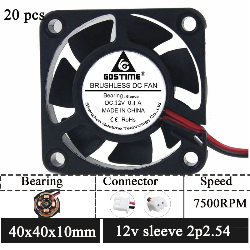 Охлаждающий вентилятор Gdstime для 3D-принтера, 12 В, 40 мм, 4 см, 4010 мм, 20 шт.