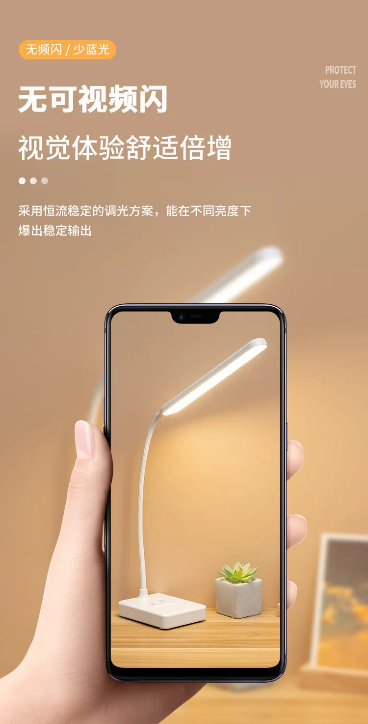 Настольная лампа для чтения, складная, с зарядкой по USB, 3 уровня цвета