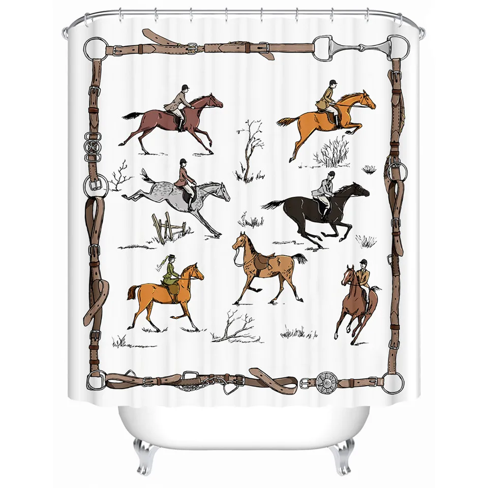 Штора для душа, для дома, для конного спорта, английский стиль, для верховой езды, водонепроницаемая, с крючками, ванная комната