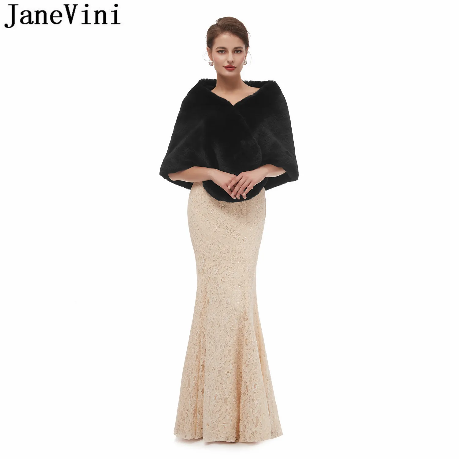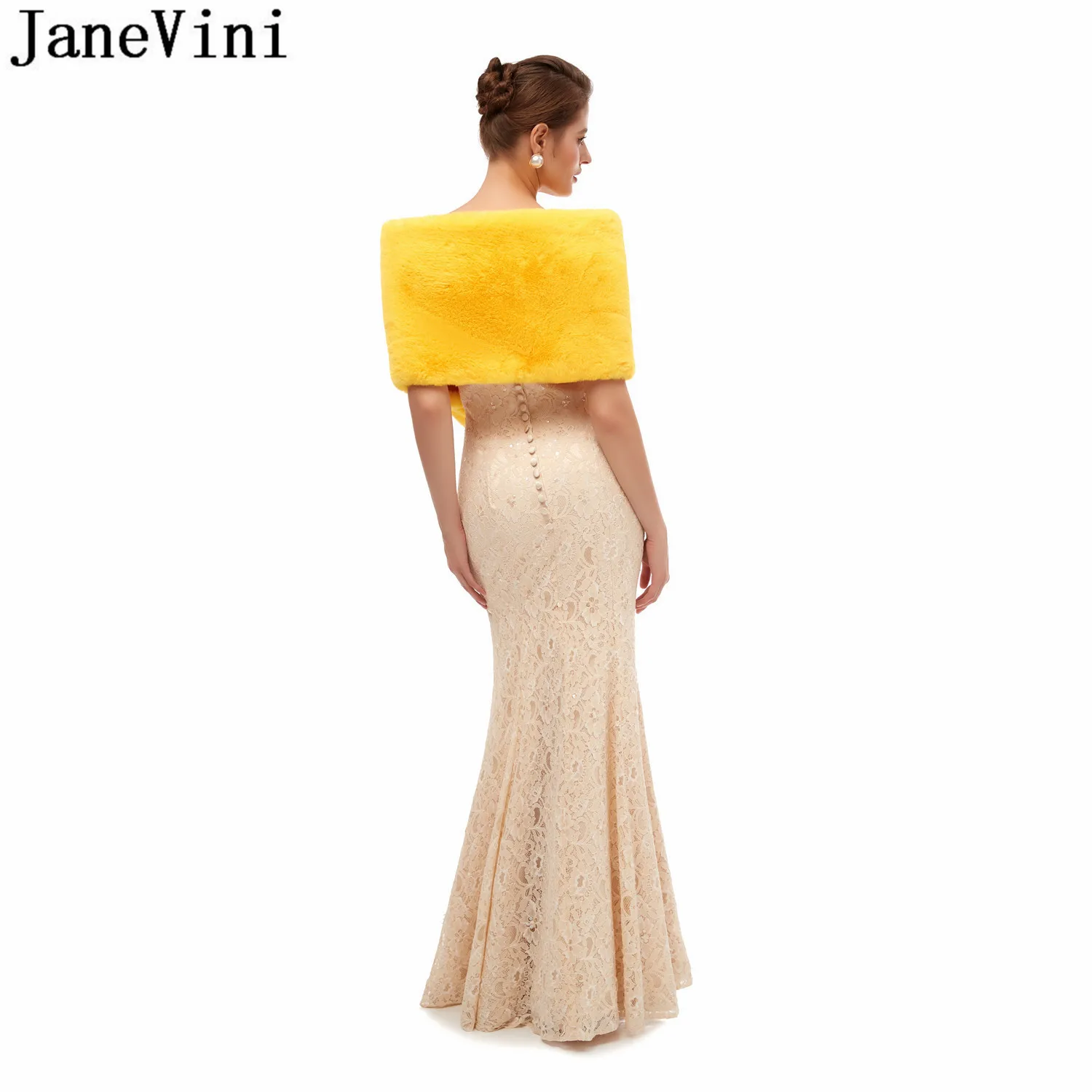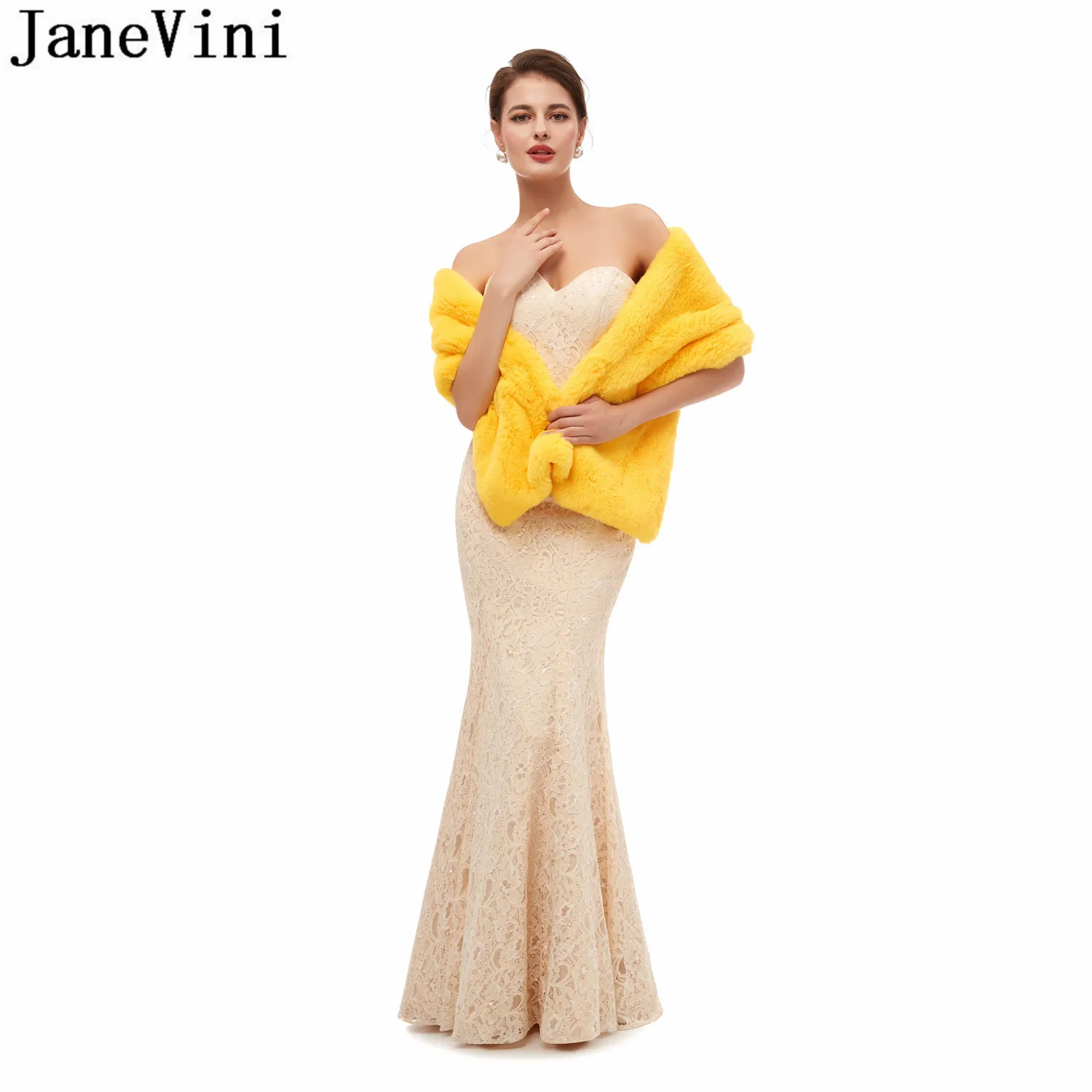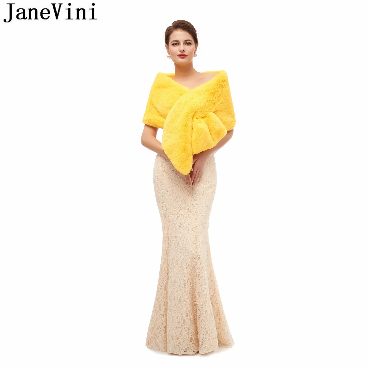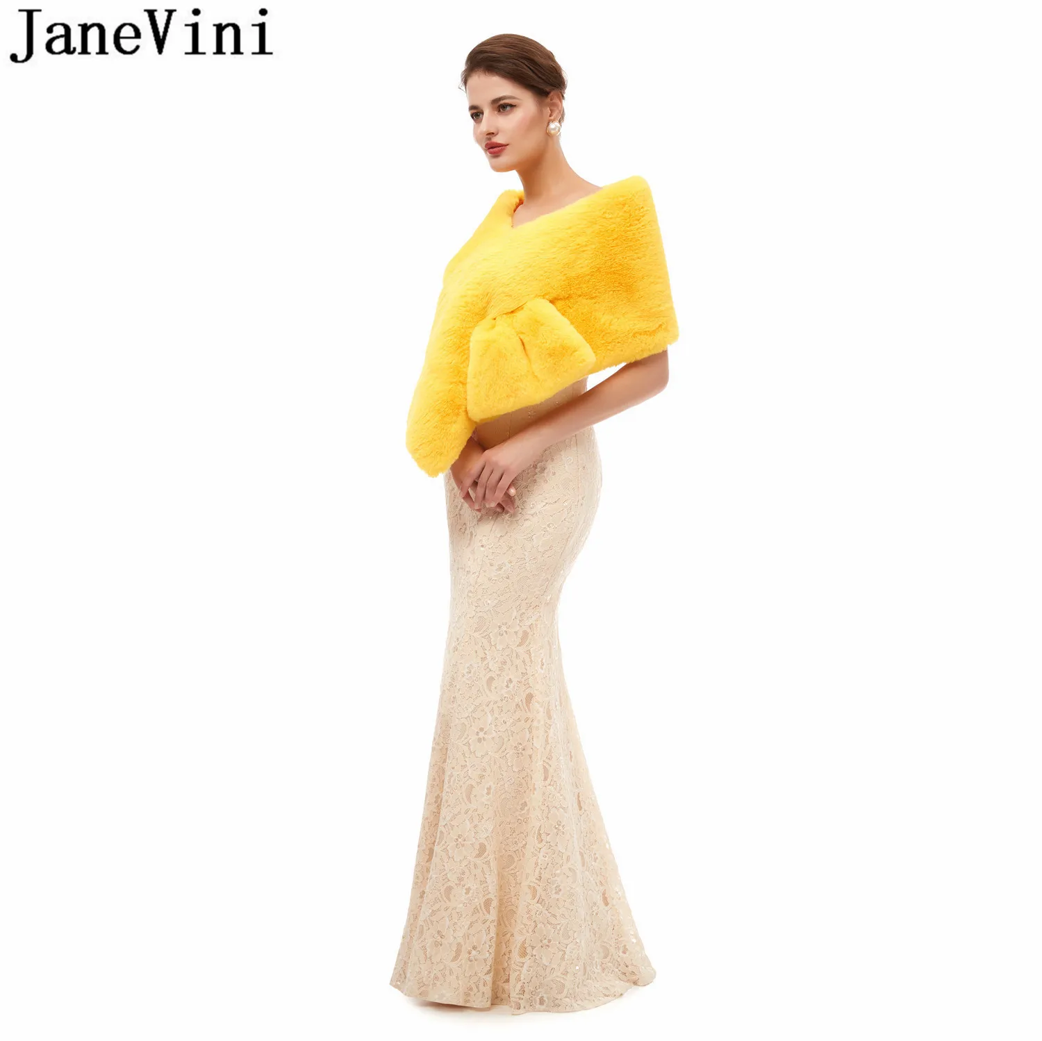 Jaevini 2020, желтые палантины из искусственного меха, зимнее теплое Черное вечернее платье для выпускного вечера, шаль из искусственного меха для невесты, палантины, куртка, болеро, свадебная накидка