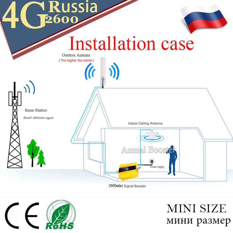 Пожалуйста, убедитесь, что вы можете получить как минимум 2 бар сигнала, который вы хотите усилить, частота сигнала сотового телефона, который вы хотите усилить, должна соответствовать частоте купленного бустера. PS: если вы хотите увеличить частоту вашего телефона 2600 МГц, 4g, вы купите Band 7)2600MHZ Booster. Наружная антенна должна быть установлена в направлении базовой станции, которая может принимать целевой сигнал.