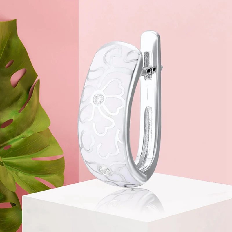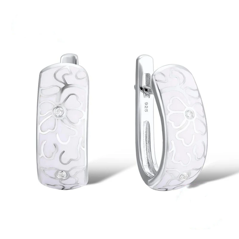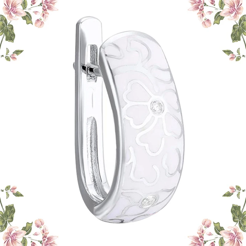 Серьги-гвоздики женские керамические в китайском стиле, с белыми цветами и имитацией фарфора