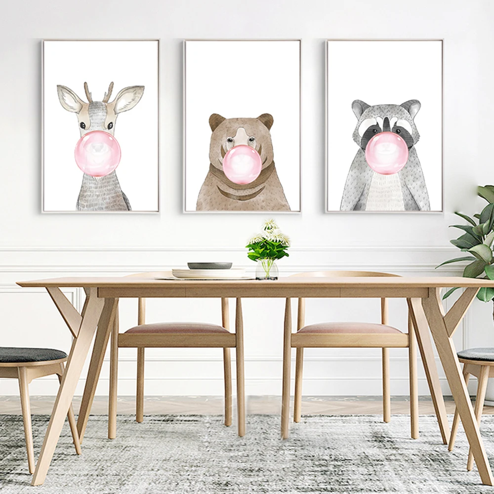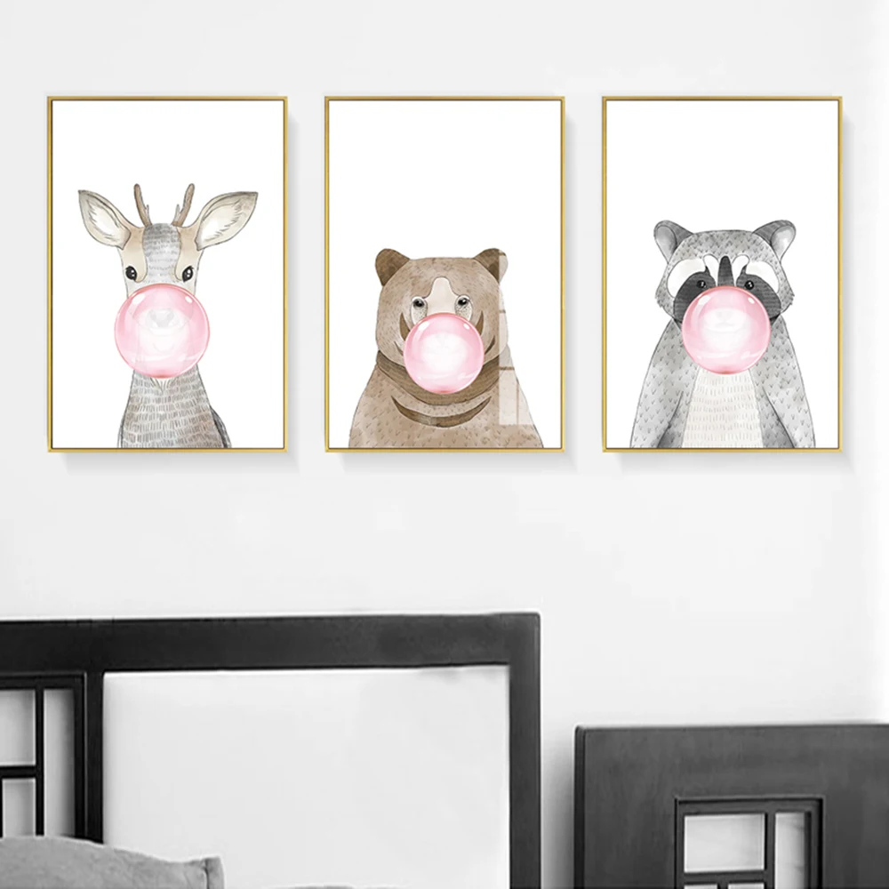 Картина на холсте с изображением забавных животных, выдувающих пузыри, настенные картины для детской комнаты, декор для детской комнаты