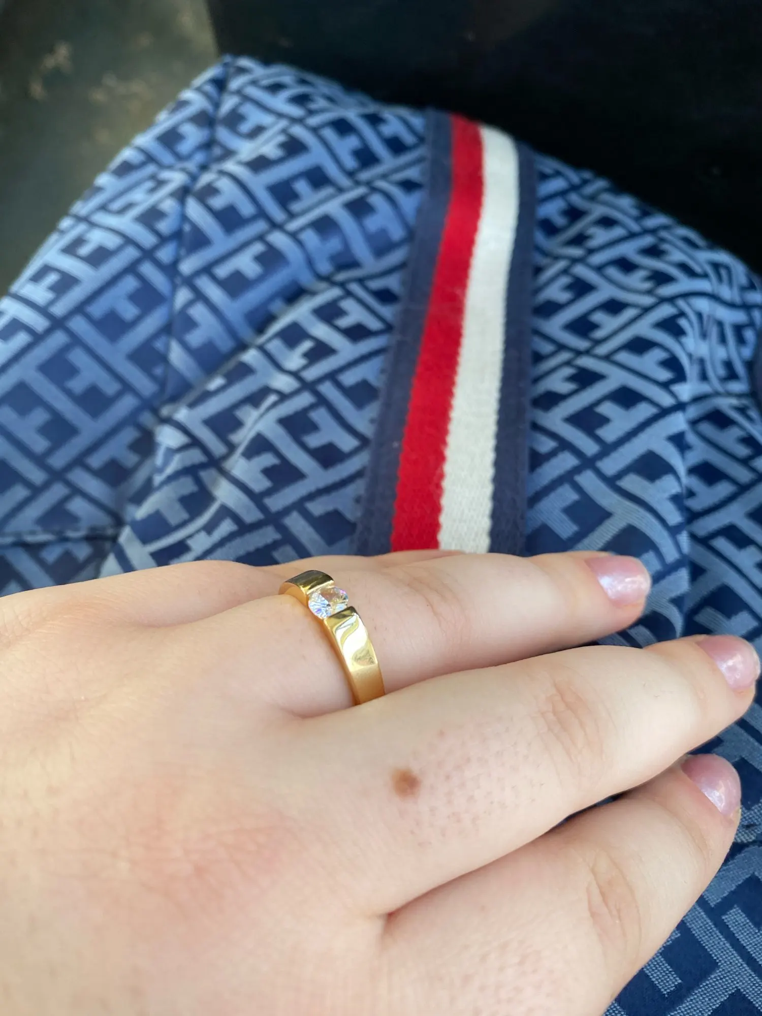 Кольцо подошло довольно быстро, и истина удивила меня, выглядит очень мило, выглядит очень естественно, как настоящее золото. Я рекомендую!