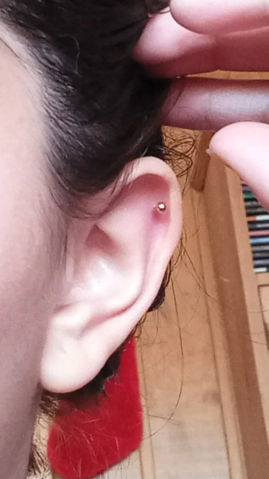 С этой серьгой, во время сверления, спина застревала, она не выходила самостоятельно.