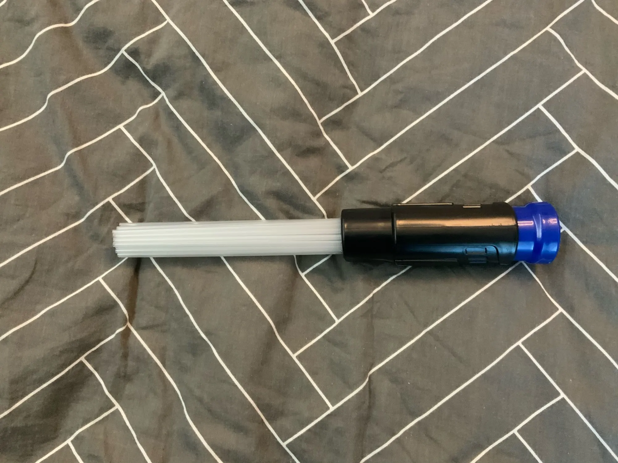 Прикольная приблудка , в труднодоступные места действительно проникает, я ей радиатор отопления в квартире пропылесосил, единственный минус, не очень существенный, это, что некоторые трубочки с обратной стороны залиты клеем и их надо очищать перед использованием, а то там скапливается пыль. Ещё на мой Самсунг насадка налезает с трудом, и то только синяя часть, чёрная большая и болтается, нормально насаживается только на синюю. А ещё если нет регулировки мощности и клапана сброса давления на гофрошланге пылесоса, то готовьтесь, что он скукожится