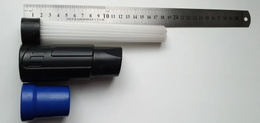 Брал эту насадку к старинному советскому пылесосу. Конечно, как я и предполагал, она к нему не подошла, нужно использовать другой переходник. Сделана насадка вполне прилично, но несколько не аккуратно - часть отверстий в колодке, куда вставлены трубки, залита клеем и не пропускает воздух, нужно этот клей удалять.