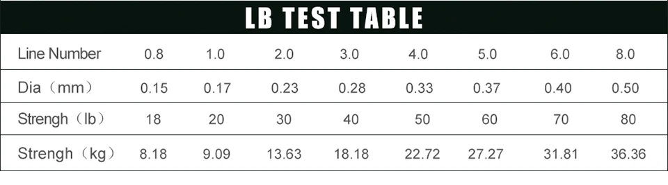 Номер лески: 0,8 1,0 2,0 3,0 4,0 5,0 6,0 8,0