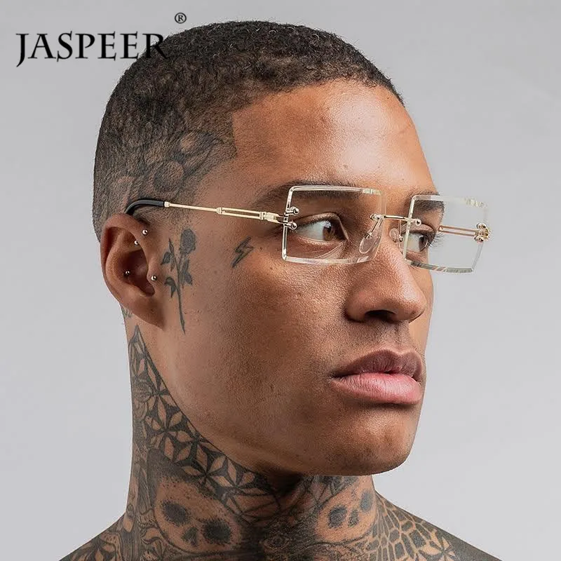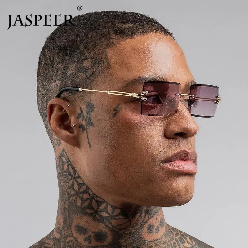 Солнцезащитные очки унисекс JASPEER, прямоугольные, без оправы, градиентные, UV400