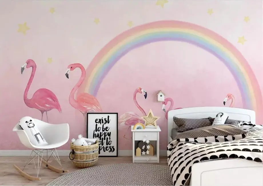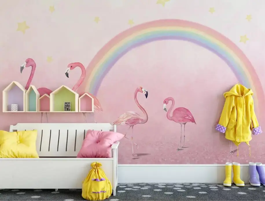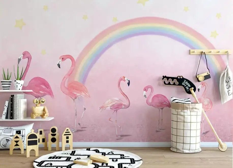 Пользовательские обои CJSIR, ручная роспись, фламинго, радуга, обои для детской комнаты, фон для детского сада, настенные 3d обои, Декор
