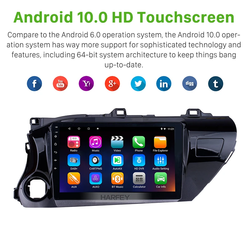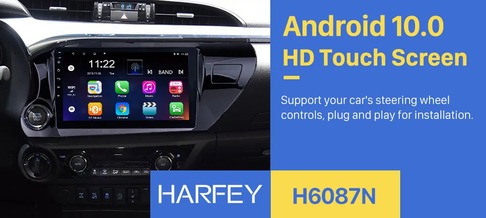 Автомобильный мультимедийный плеер Harfey, Android 10,0, 10,1 дюйма, для TOYOTA HILUX 2016-2018, с левой рукой, Bluetooth, GPS, USB, FM, SWC
