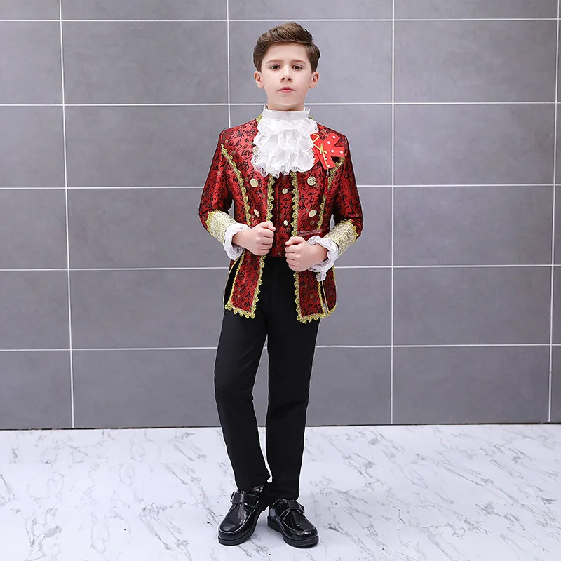 Костюм для косплея King Prince, вечерний костюм принцессы эпохи Возрождения в средневековом стиле, пальто + брюки + галстук, полный комплект детской одежды