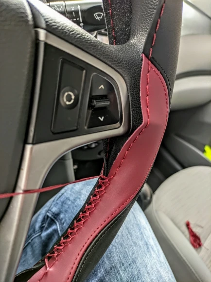 товар стоит своих денег. комплект оплетка нитка иголка. сделано качественно. на руле ещё не примерял.