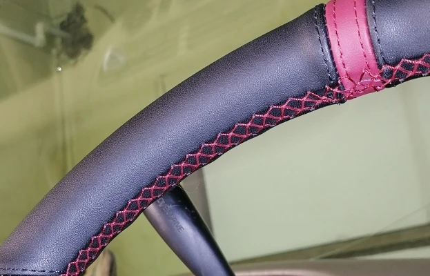 обивка пришла в заявленный срок, качество неплохое,на ощупь приятное!, швы ровненькие,продавцу и товару - сплошные плюсы!!! P/S- на Мэрседес W203 - не подошёл, ..по окружности руля - в самый раз, но по ширине большой. Нужно на один сантиметр уже. На фото постарался указать причину! По факту товар 10,3см, а в самый раз будет 9см. Всем удачного нового года!,продавца рекомендую!