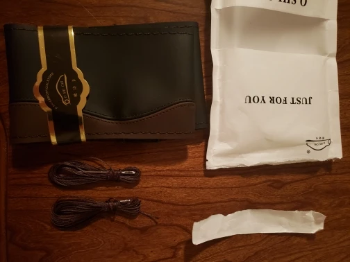 Совсем не кожа, на вид так не плохо. пришло довольно быстро. 2 комплекта ниток.