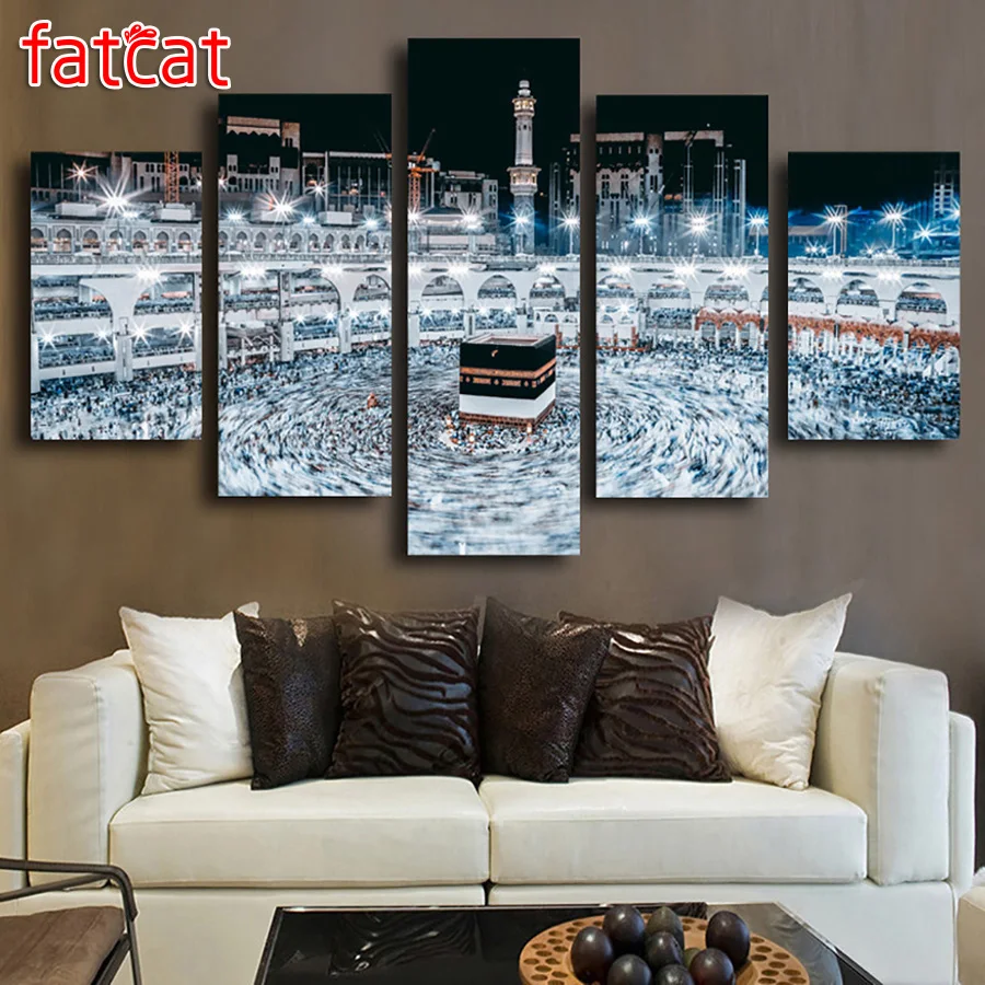 Набор для алмазной вышивки FATCAT AE977, набор из 5 предметов в современном стиле, с изображением мечети, Mecca, ночного пейзажа, сделай сам