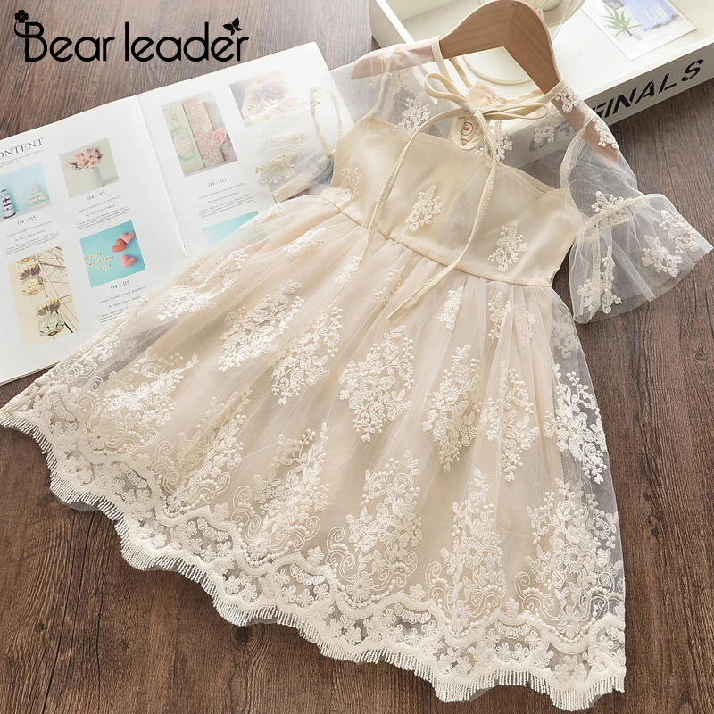 Bear Leaderплатье для девочек коллекция 2022 года, новое летнее платье принцессы элегантные кружевные костюмы с короткими рукавами, вечерние платья Одежда для детей возрастом от 3 до 7 лет
