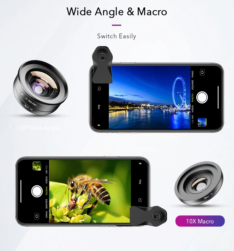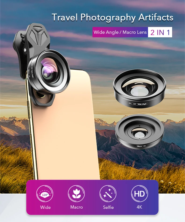 Объектив APEXEL для телефона, HD, 120 градусов, 4K, широкоугольный, 10x макрообъектив + Звездный фильтр CPL для Iphone, Samsung s9, всех смартфонов