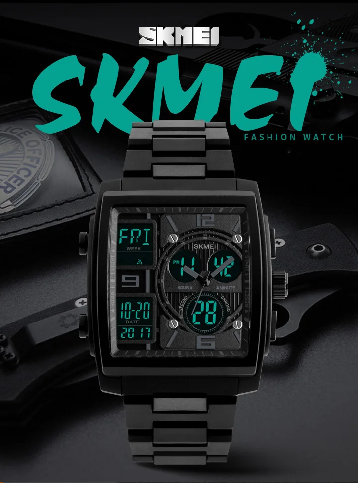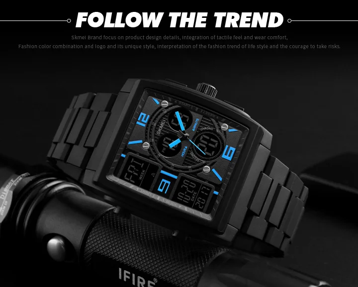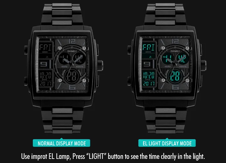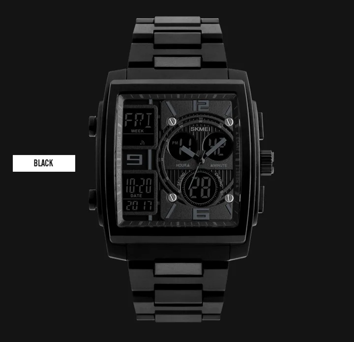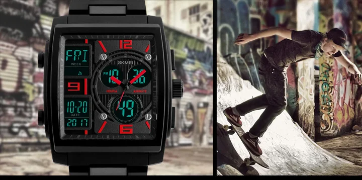 Мужские Аналоговые кварцевые электронные часы SKMEI, водонепроницаемые, с двойным дисплеем, в стальном ремешке, 2020