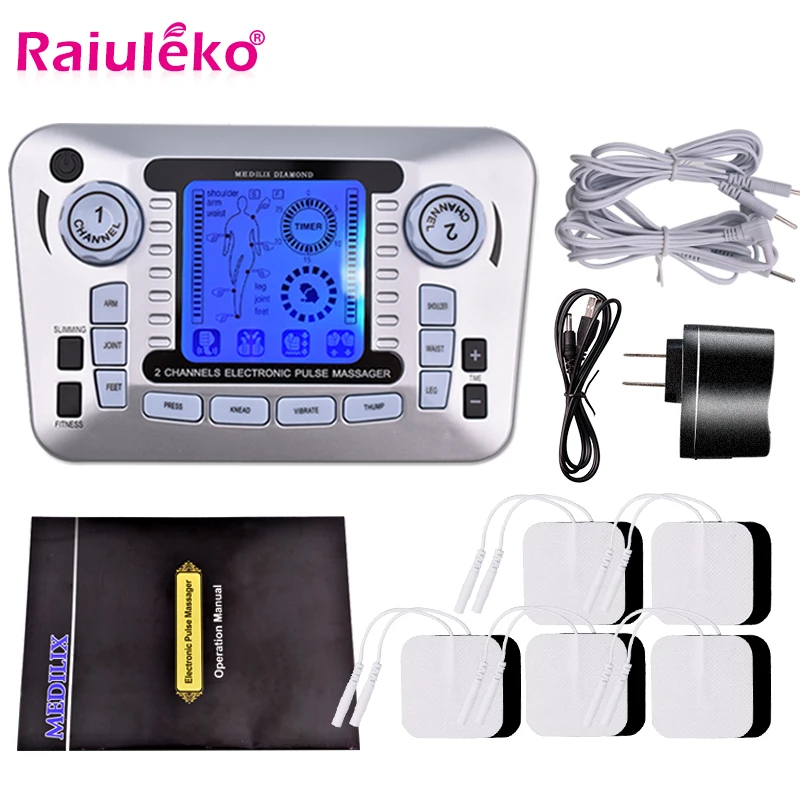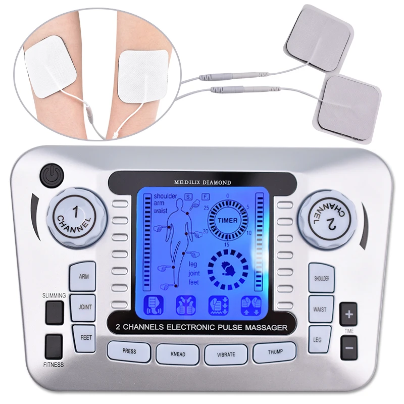 Импульсный массажер с двойным выходом, электрический стимулятор мышц, Электротерапия Tens машинка для иглоукалывания, устройство для массажа тела, снятие боли