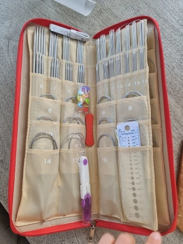 Набор спиц для вязания из нержавеющей стали с сумкой, аксессуары, л...