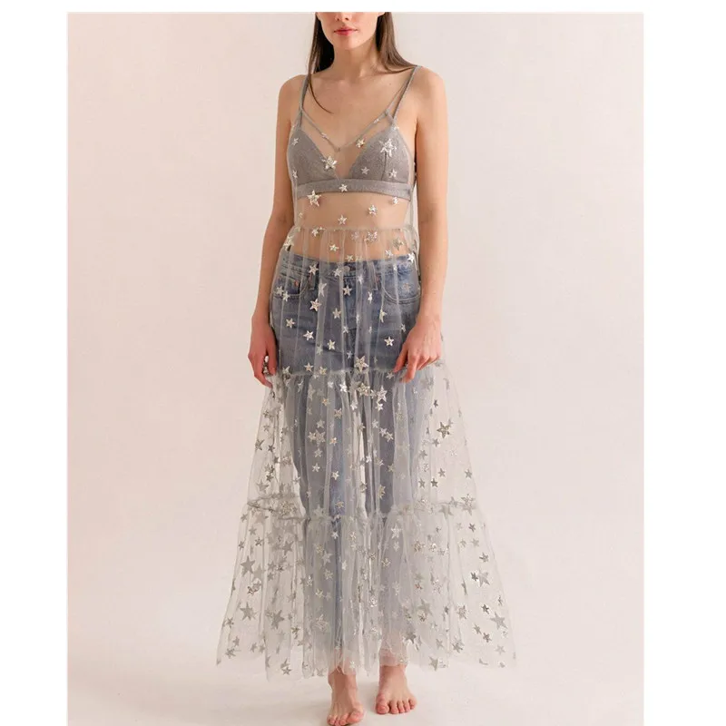 Сарафан женский, кружевной, пляжный, со звездами и блестками, лето 2020