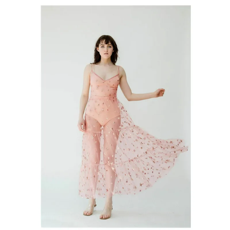 Для женщин тонкие лямки Тюль прозрачная длинное платье es крышка се...